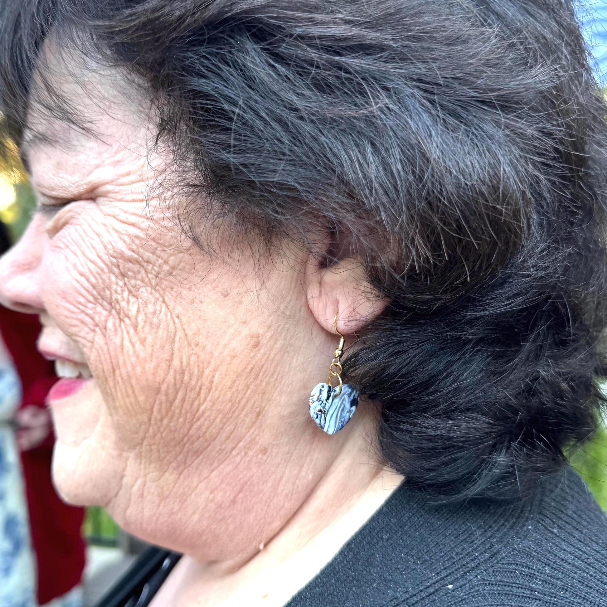 These heart-shaped beauties are handmade with love (and polymer clay), bringing together classic black and white stripes with a modern marble effect and a glint of rose gold foil flakes for that perfect “Ooh, where’d you get those?” moment. They’re equal parts bold and elegant — kind of like if Audrey Hepburn and a disco ball had a jewelry baby.